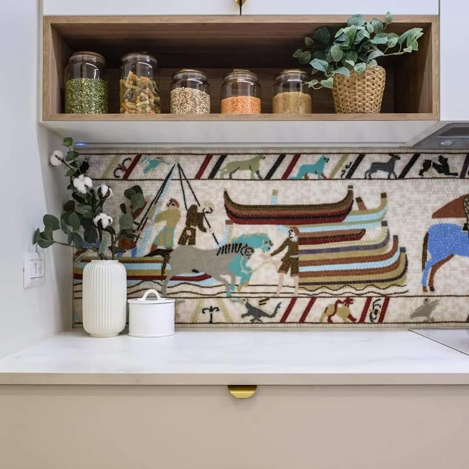 Клиенты обратились с собственной идеей. Восхитительный гобелен в французском городе Байо так им понравился, что было решено включить его изображения в новый интерьер.